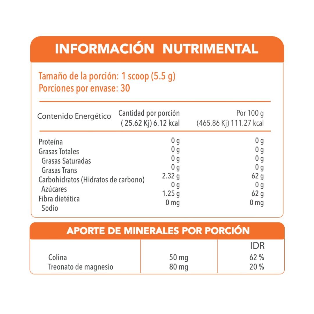 Nuestra increíble fórmula combina potentes nootrópicos como la Colina y el Treonato de magnesio, que podrían ayudar a mejorar el aprendizaje, la retención de información y retrasar el deterioro cognitivo. Además, incluye probióticos como Lactobacillus acidophilus y Bifidobacterium lactis, que equilibran la flora intestinal y optimizan la digestión. Con antioxidantes y fibra, podría favorecer la absorción de nutrientes, potenciando al máximo el sistema inmunológico.