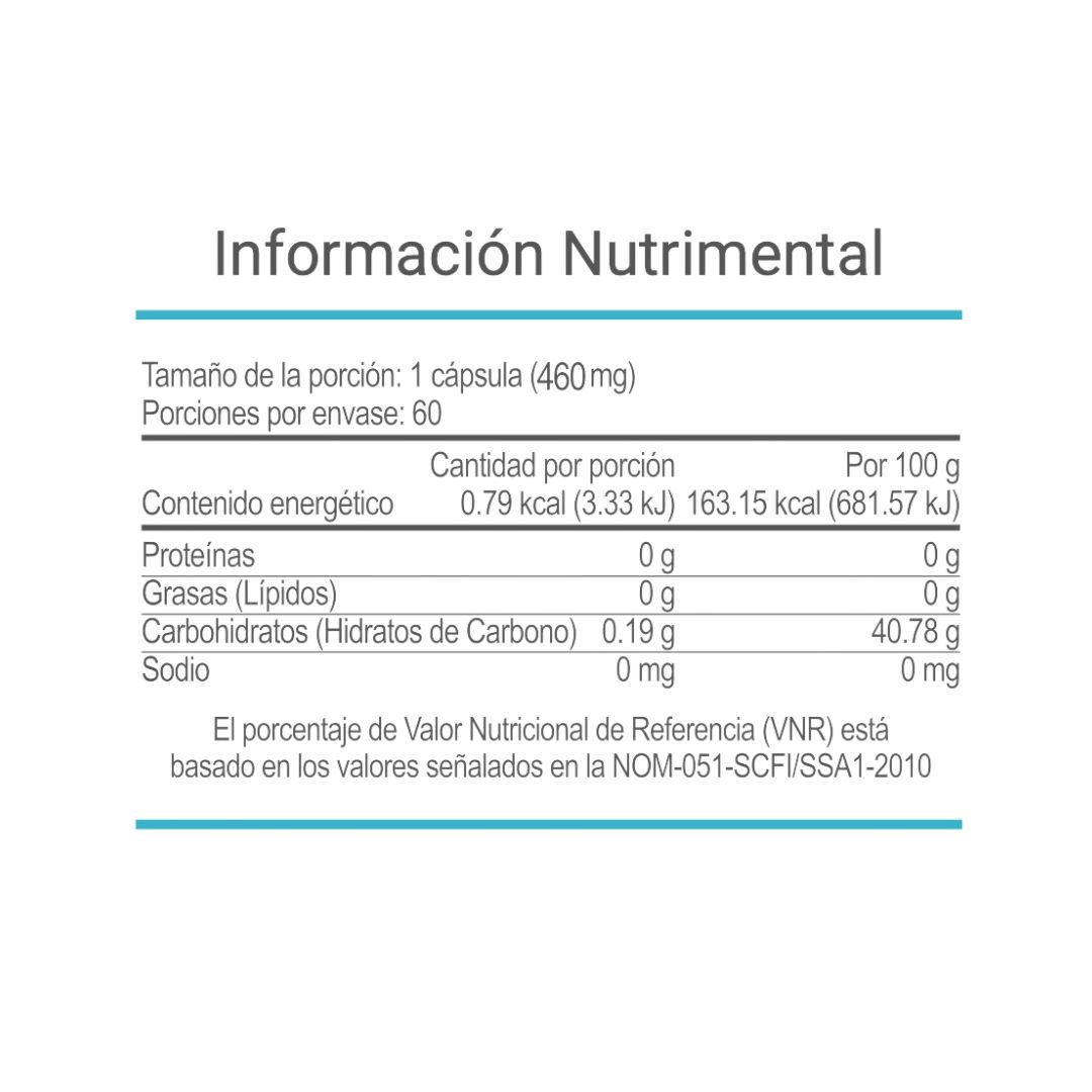 Té verde (Camellia sinensis), Pasiflora ,Valeriana , Menta (Mentha piperita L.), Hierba tumba vaquero (Ipomoea stans) y Dióxido de silicio.
